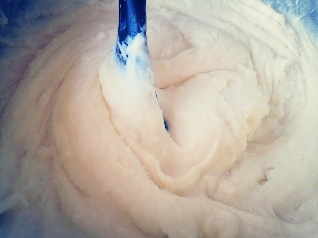 Drain the potatoes and add the cubed butter and milk. Mash until your heart is content! and then mash some more, and more. Make sure you mash and stir at the same time. The mashing process usually take around 10 minutes, believe me your arms will get tired so I suggest getting a friend to help take turns.
